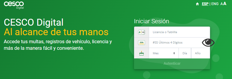- Ingresar los datos: licencia o tablilla los últimos 4 dígitos, del mes, día y año.
